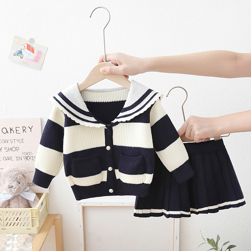 A generation of Korean version of 2023 children’s sweater new autumn and winter girls cardigan academic style lapel striped suit