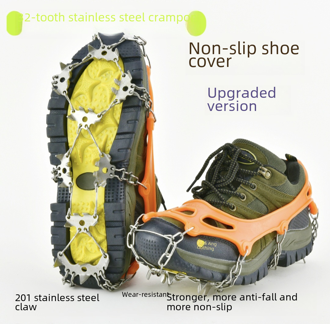 Outdoor mountaineering hiking rock climbing 32 teeth snow ice claw non-slip shoe cover 201 stainless steel ice chain wholesale