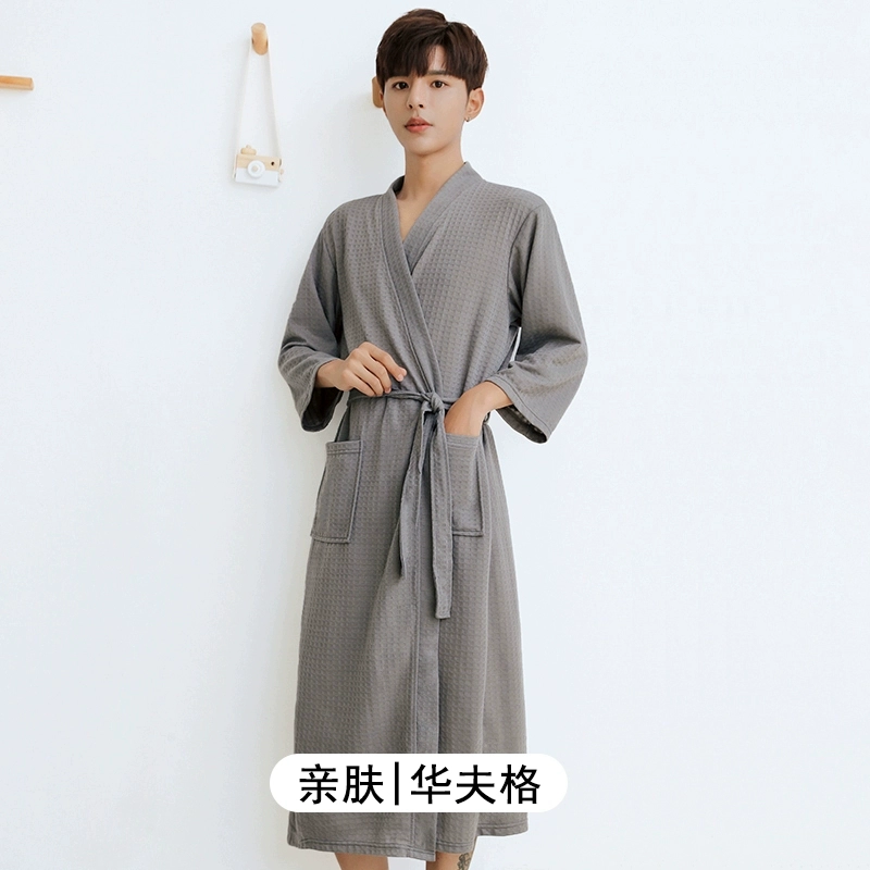 Couple pair of bathrobes for women long spring and autumn thin men’s nightgown hotel ice silk pajamas absorbent yukata summer