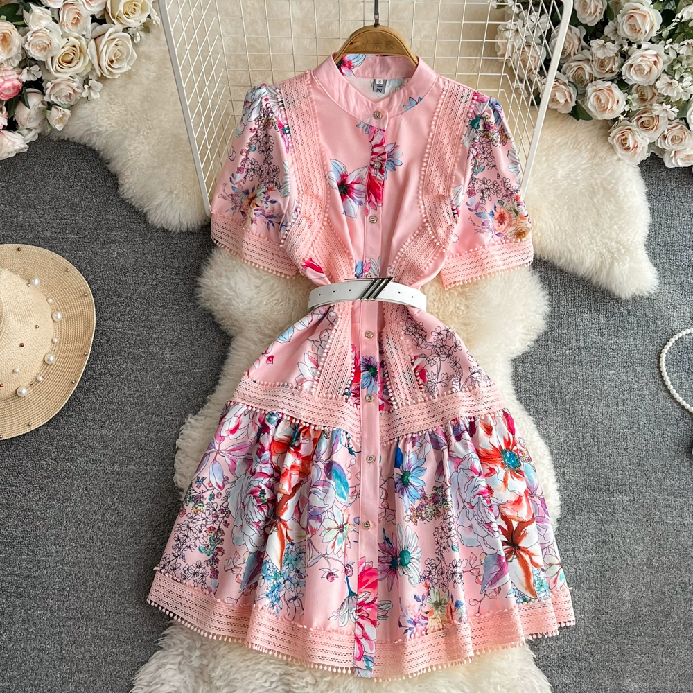 Summer niche bubble waist printed dress short sleeves
