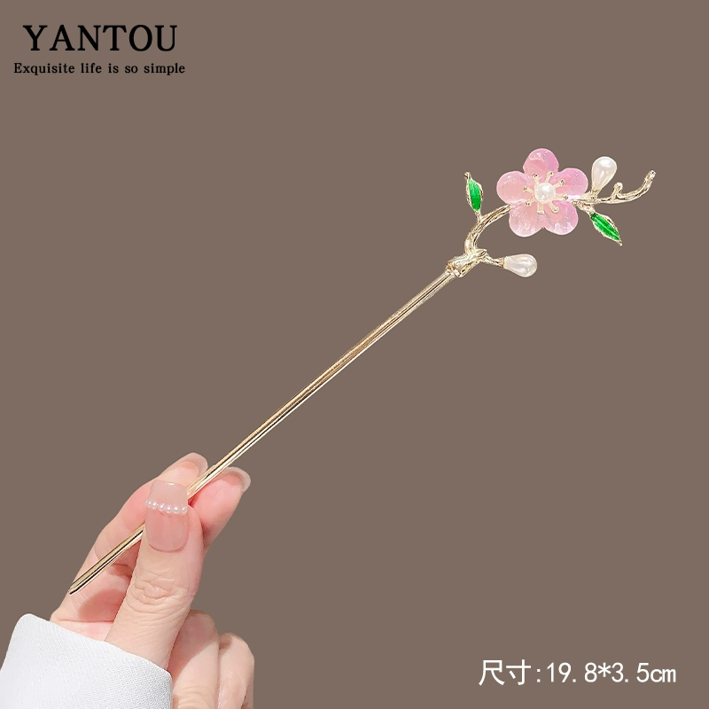 Ancient style exquisite pink hair buns walking cheongsam peach blossoms