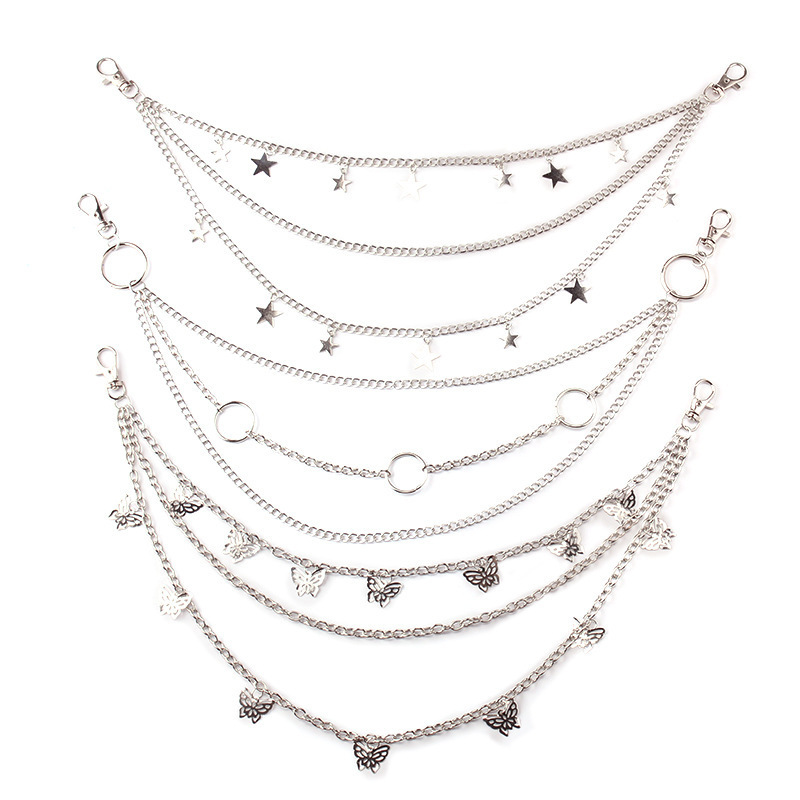 Body Six-piece Metal Padlock Hot-selling European and American Cross-border Simple Pendant Chain Trendy Pants Butterfly All-match Chain