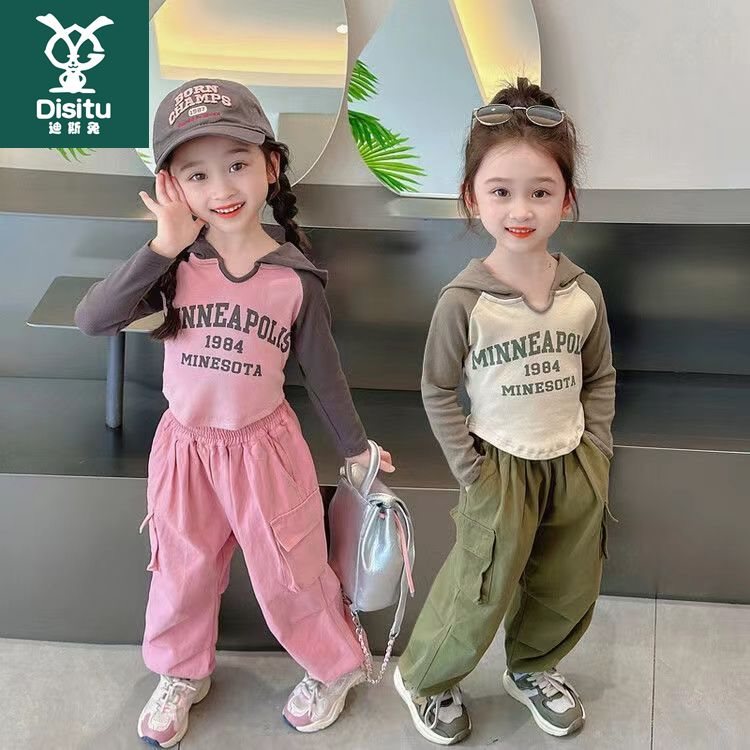 Disi Rabbit Girl’s Autumn suit 2023 Baby Girl’s Fashion Hooded Sweatshirt Children’s Coil Pants Spring and Autumn Two-piece Set