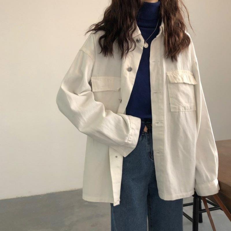 Single Breasted Denim Jacket Spring Women’s 2024 New All-match Loose Slimming Solid Color Lapel Jacket Trendy Top