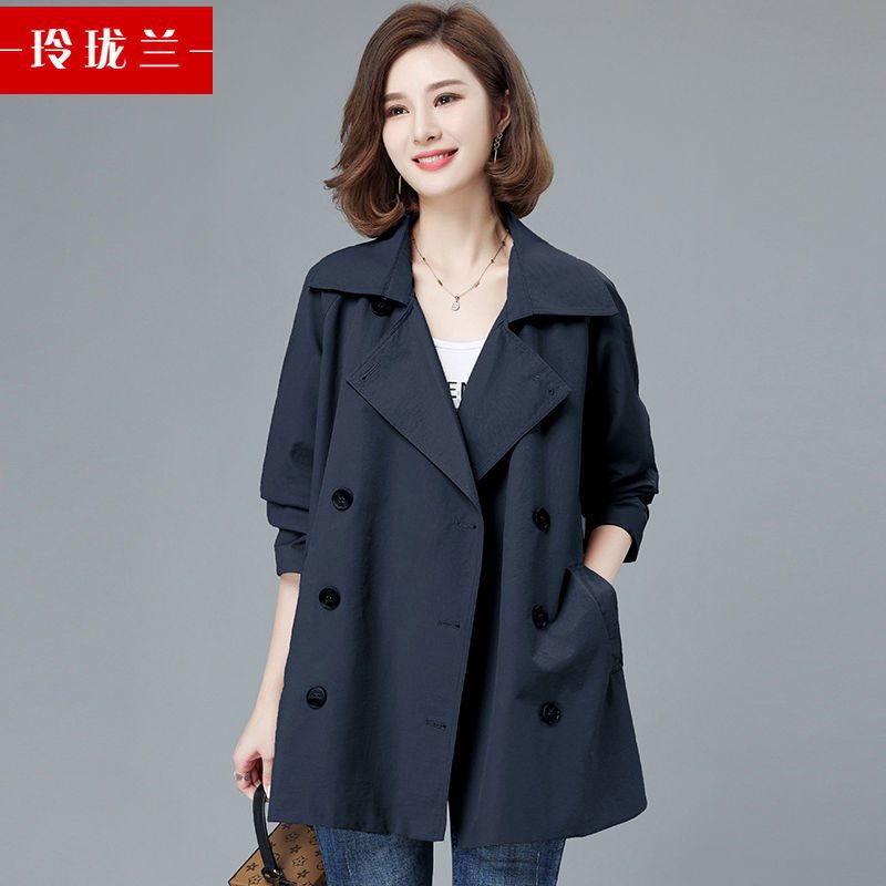 [with lining/good quality] plus size women’s coat long spring and autumn chubby girl small windbreaker top tide