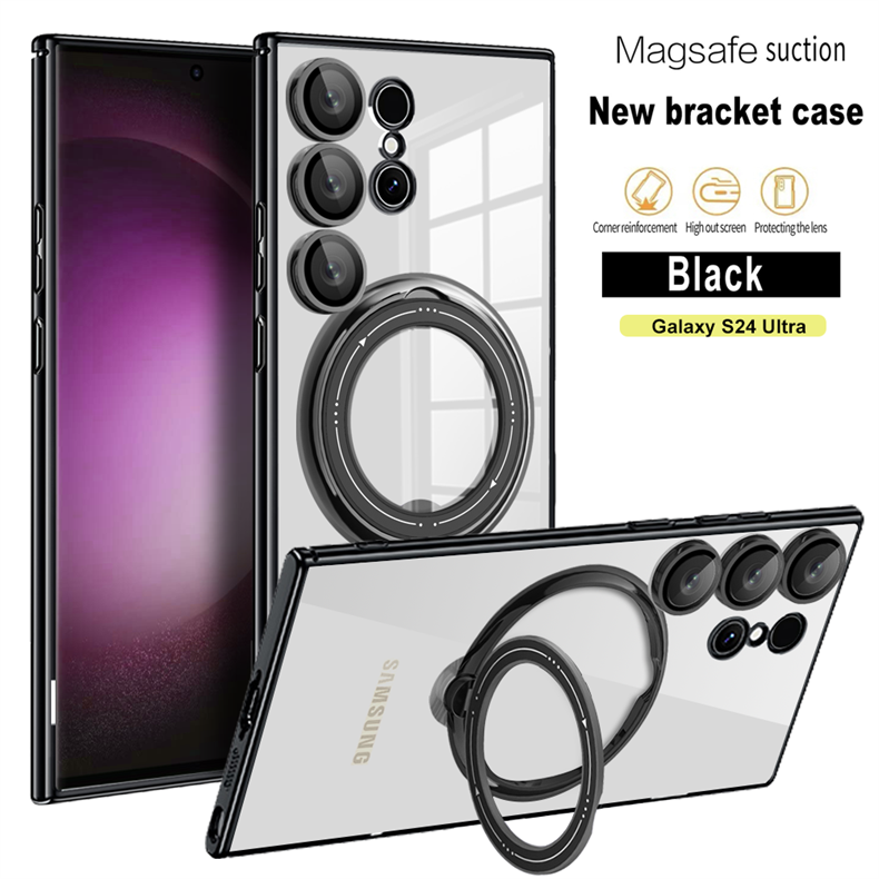 Magnetic standing stand is suitable for Samsung S23ULTRA mobile phone case S24U electroplating S22Plus transparent GLAXY is 23fe+22utral ultra -thin A54 all -inclusive A52 silicone A14 anti -drop