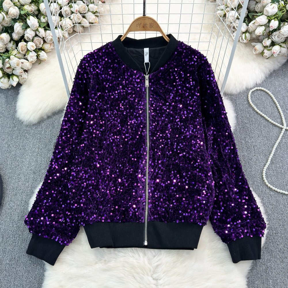 Fashionable Korean style sparkling casual versatile baseball uniform with sequins