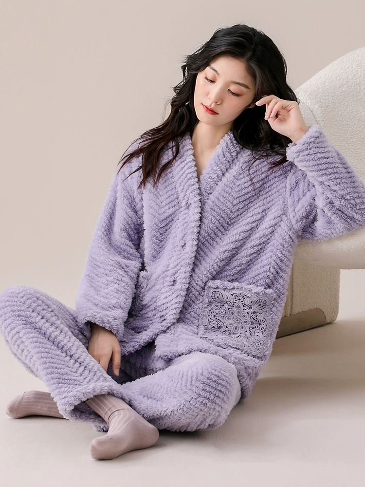 Women’s pajamas autumn and winter thickened velvet coral velvet suit can be worn outside large size autumn and winter flannel home clothes