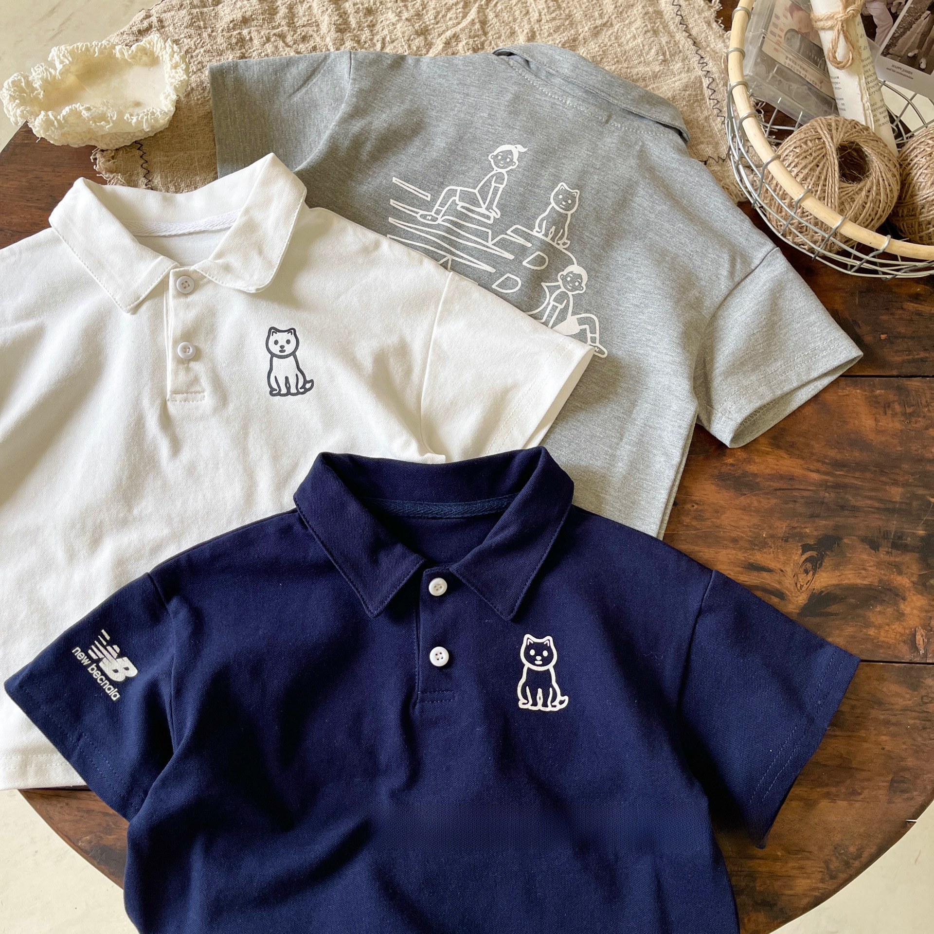 Boys’ cartoon polo shirt 2023 Summer Children’s Korean-style letter cat T-shirt baby fashion summer wear BY153