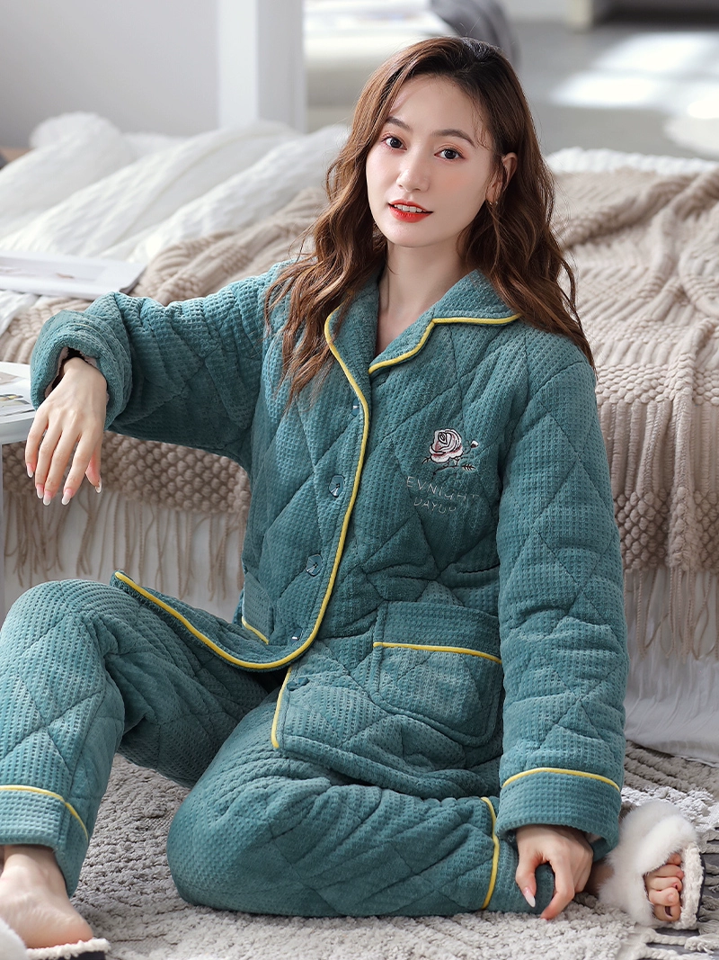 Antarctic three -layer cotton padded and velvet home clothing pajamas
