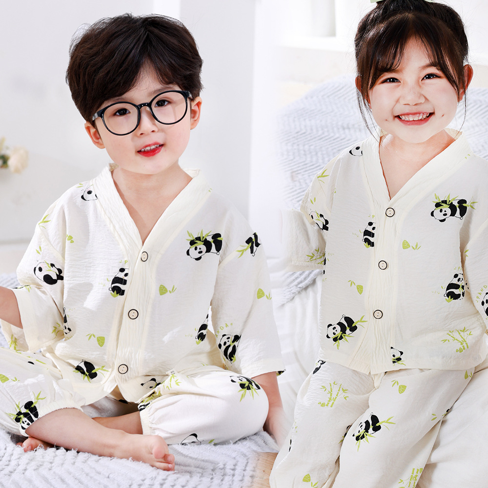 7088 Summer High-end Thin Cardigan Pajamas Home Clothes Seven-sleeve Air-conditioning Clothes for Boys and Girls suit