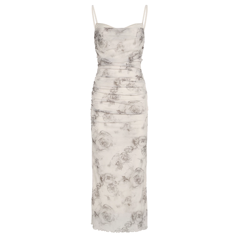 Folding net gauze holiday dress rose printing
