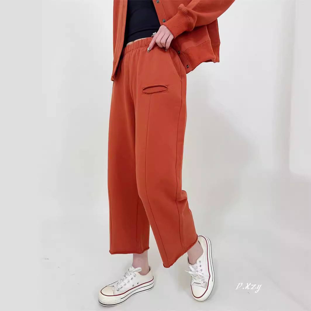 BJ Summer New Women’s Sweetpants Korean Style Casual Loose Waist Loop Cotton Ankle-length Pants Women’s Hole Sweetpants Solid Color