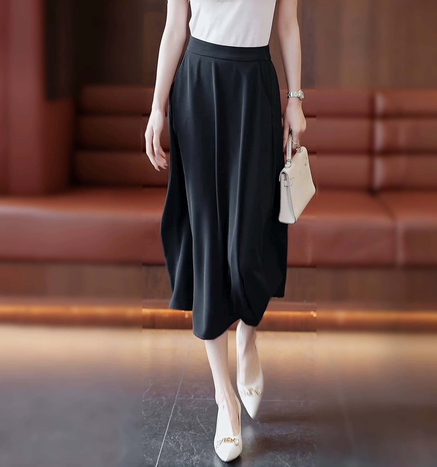 The long -lasting high waist high -waisted skirt