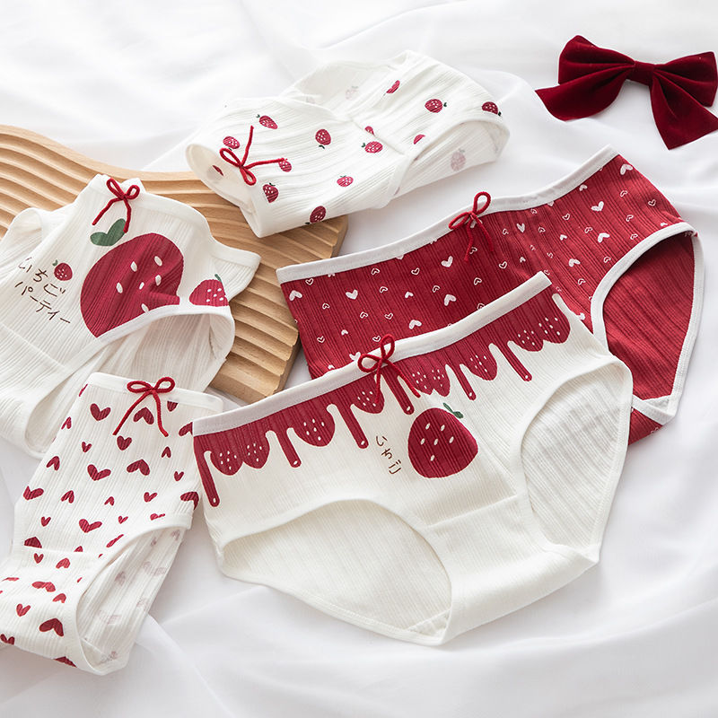 3/Mid-waist Big Red Berry Shorts Women’s All Cotton Crotch Girl’s Pure Cotton Underwear for Women
