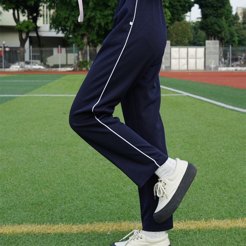 Spring, Summer and Autumn School Uniform Pants Tibetan Blue Black Fine White Edge Pants for Men and Women Senior high school Junior School Uniform Pants