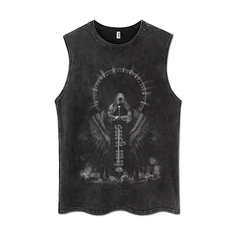 Trendy European and American high street distressed ins loose sleeveless T-shirt