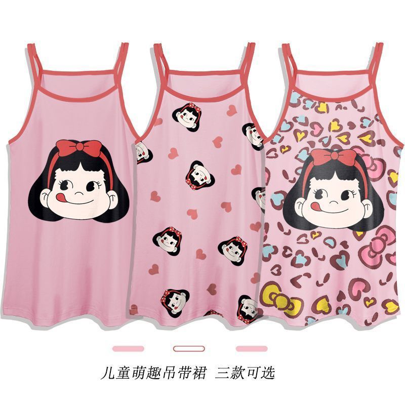 New Summer Pajamas Home Clothes dress Girls Baby Cartoon Cute Sling Ice Silk Cool Small and Medium-sized Children’s Trendy