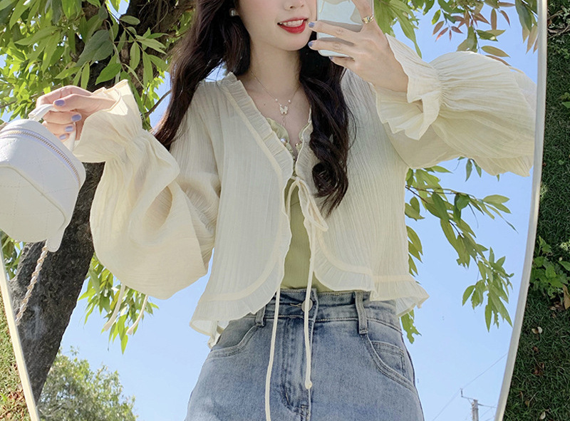 Sun protection shirt coat women’s design sense niche cardigan summer thin fresh sweet Korean chic short top women