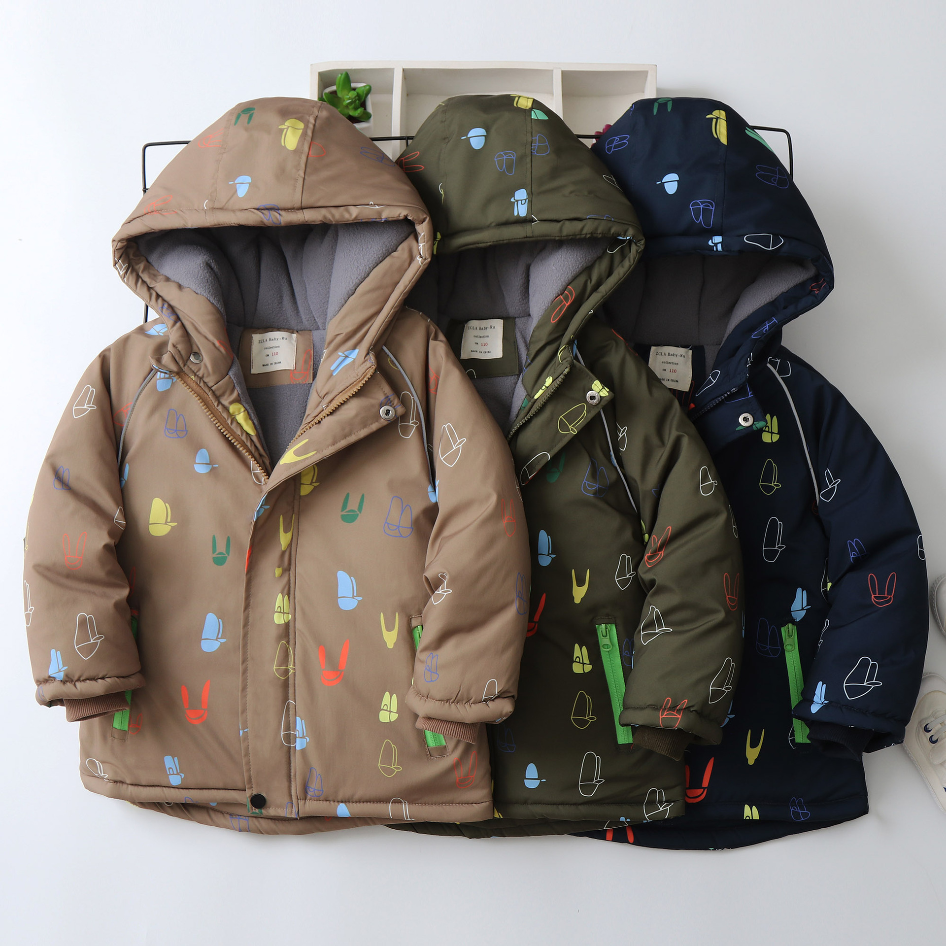 LM-8825 printed hooded fleece-lined boys cotton-padded clothes thick children’s cotton-padded jacket 2024 winter new children’s clothing cotton-padded clothes