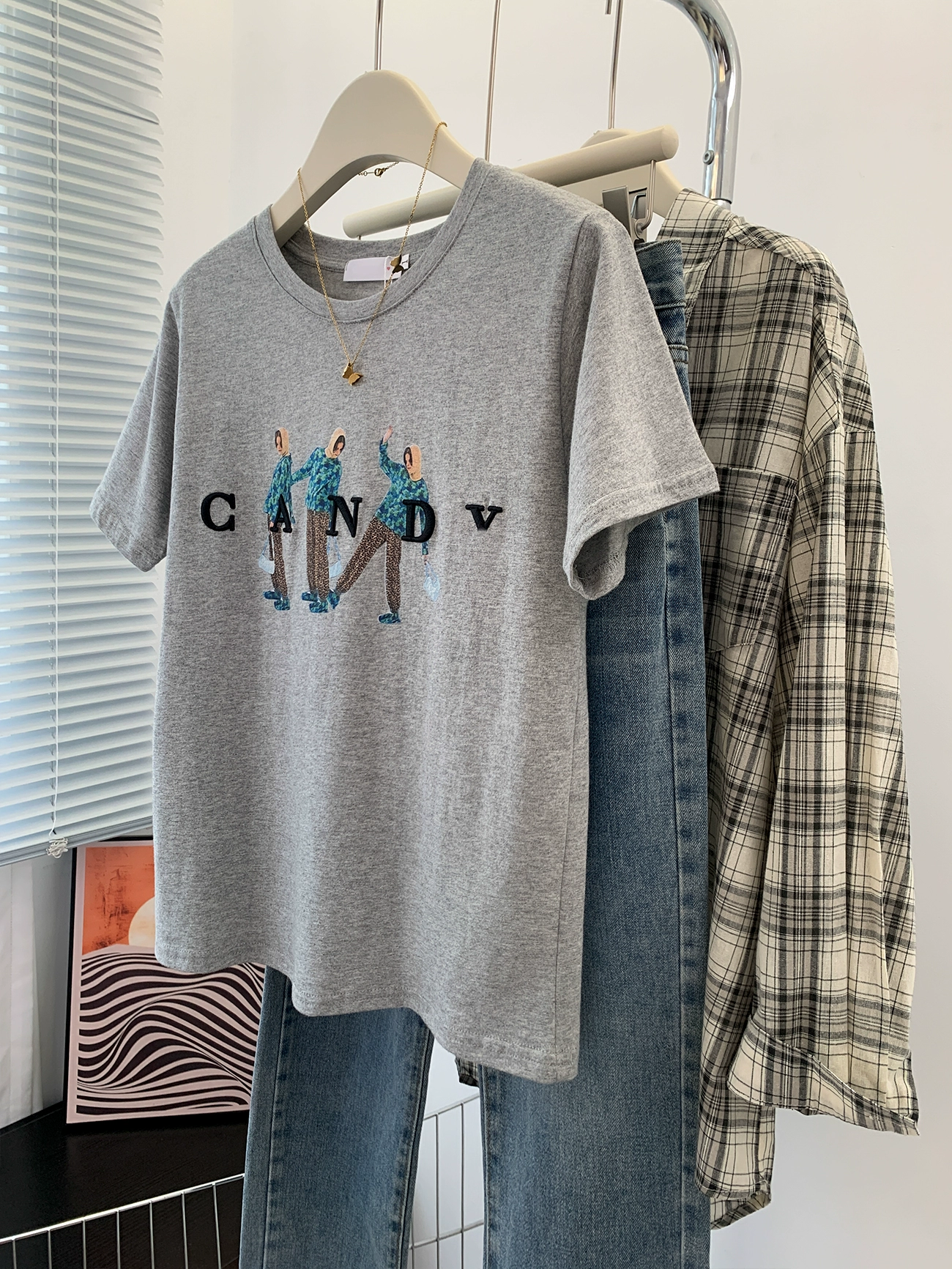 Wearing a design sense, niche cotton cotton, head shoulder short -sleeved T -shirt