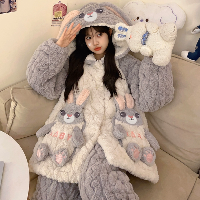 Cute pajamas for women thickened and velvet 2023 new flannel coral velvet three-layer quilted winter day suit home clothes