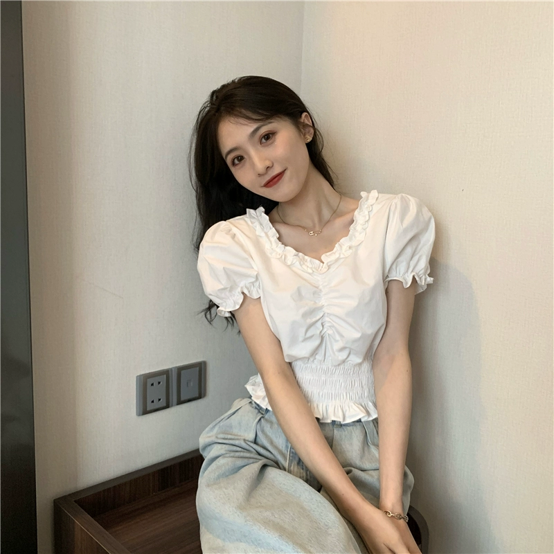 French chic girl summer hot girl beautiful short -sleeved T -shirt
