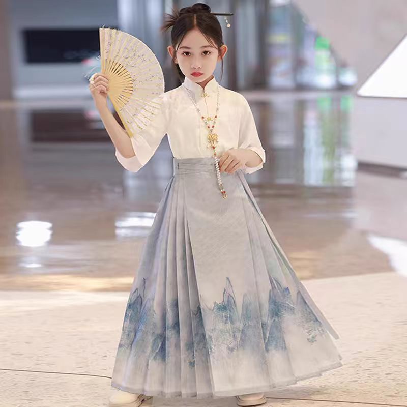 Children’s New Daily Horse-faced Skirt Little Girl Chinese Antique Ming Style Hanfu Girl’s Improved Tang Suit Summer suit