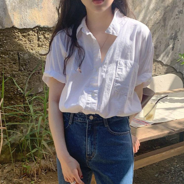 Korean Style White Short-sleeved Shirt Women’s Summer New Design Sense Niche Shirt Loose Lazy Casual Thin Top