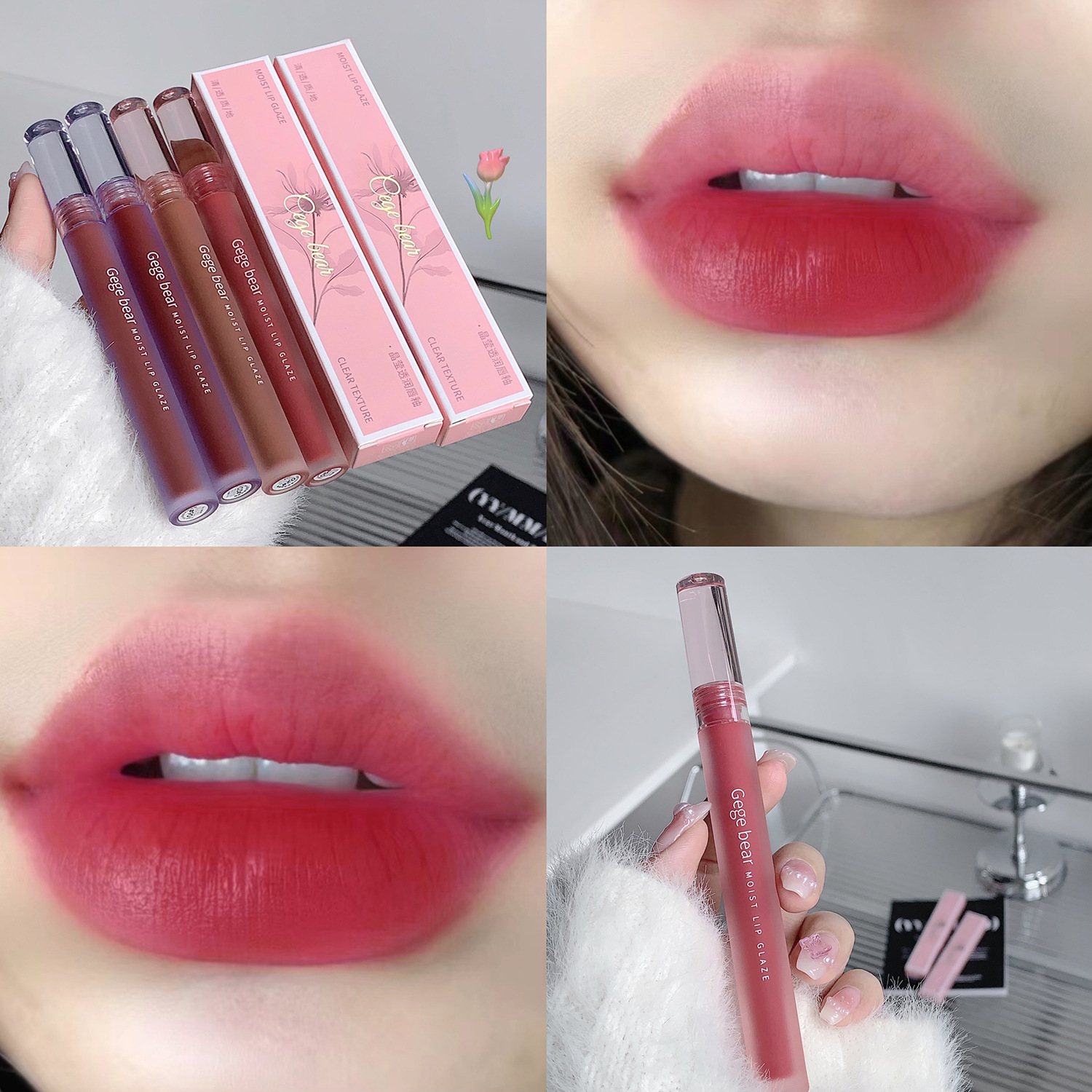Gegebear Gogo bear soft nude mist Velvet Lip Glaze autumn and winter lip glaze Shantou makeup cheap student lipstick