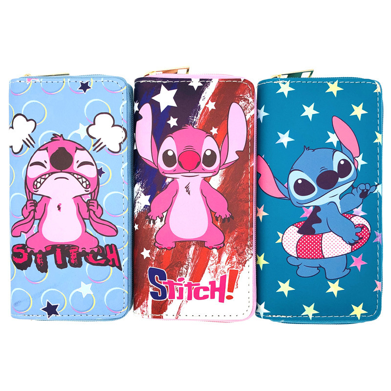 Spot European and American style Stitch PU wallet student Long wallet single pull bag cosmetic bag cartoon Passbook bag wholesale