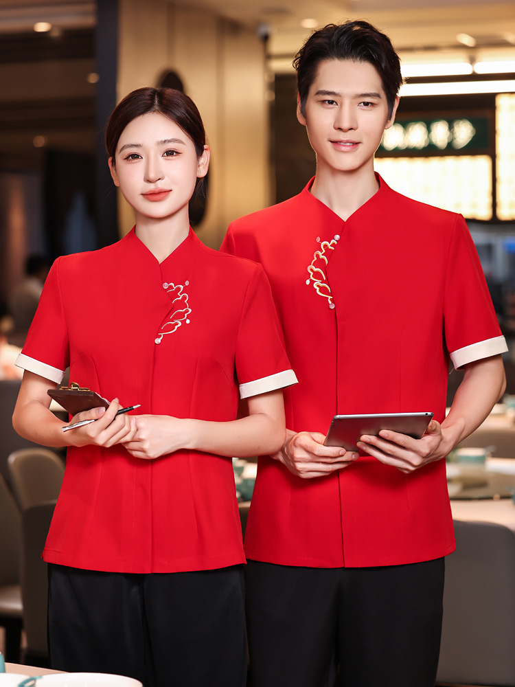 Chinese High-end Catering Waiter Work Clothes Female Short-sleeved Summer Hotel Restaurant Tea House Hotpot Hotel Staff Clothes