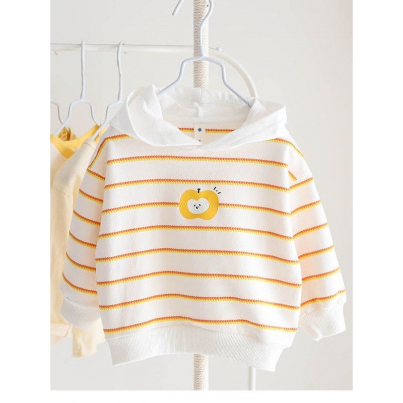 Baby’s Hooded Sweater Boys’ Stylishness Base Shirt Children’s Cute Striped Korean Top Infant Children’s Wear Autumn Clothes