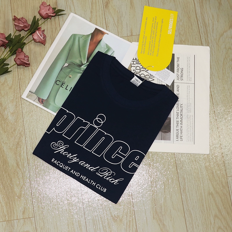 24 Summer new North American niche English letter printing blue cotton women’s short -sleeved T -shirt