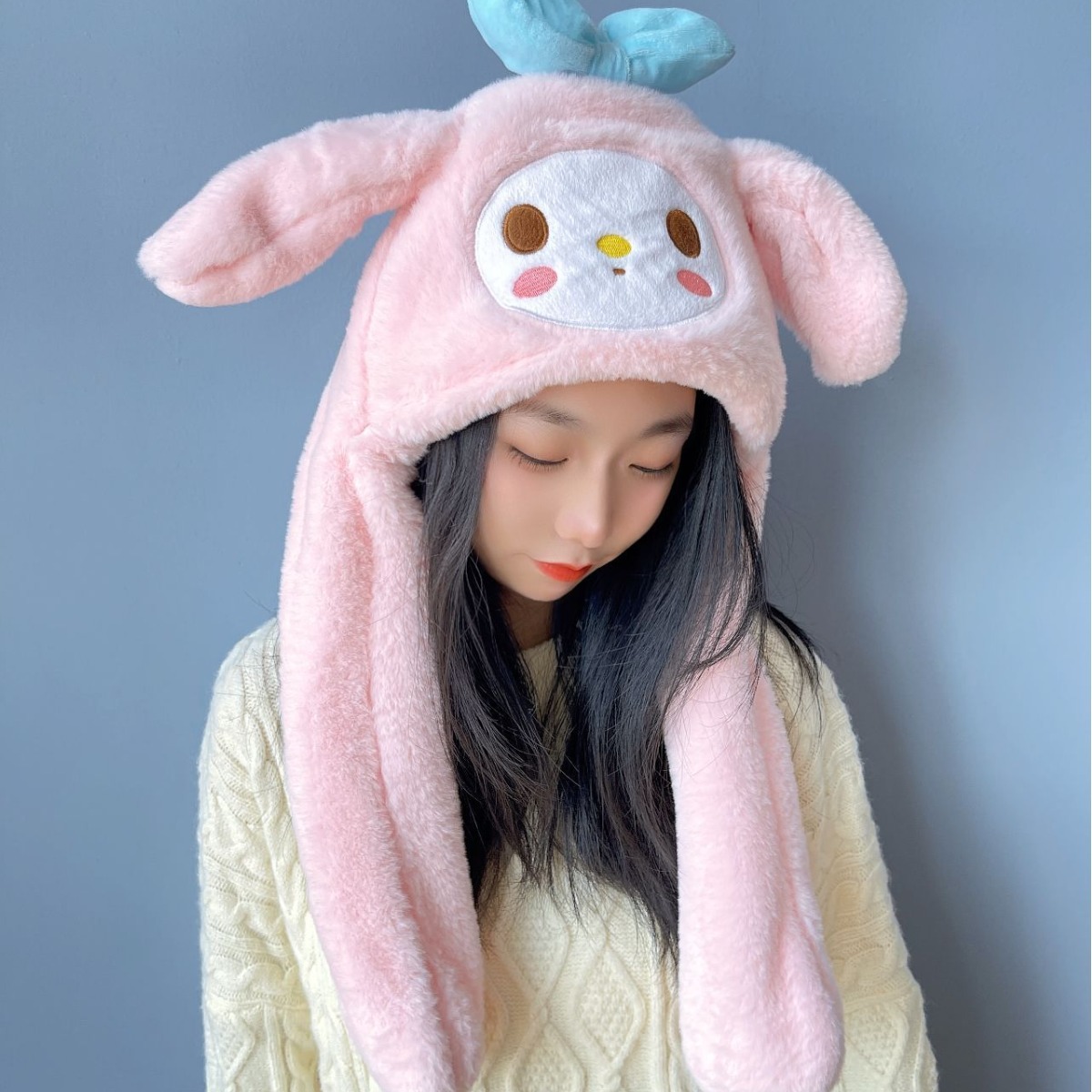 Internet celebrity style moving ears children’s hat winter cute scarf integrated warm scarf middle and big children’s two-piece set