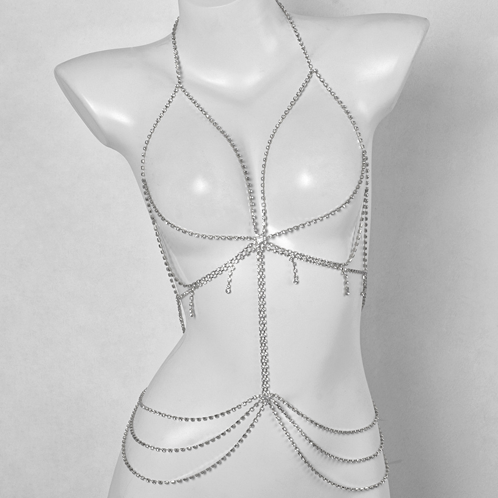 Cross-border New Rhinestone Chest Decoration European and American Fashion Square Diamond chain Nightclub Sexy Body chain for Women
