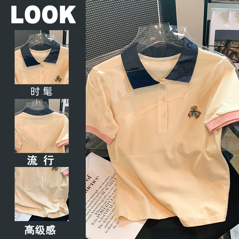 Girls’ Summer Short-sleeved Polo Shirt T-shirt 2023 New Style Western Style Middle and Large Children’s Colors Embroidered Bear Summer Top