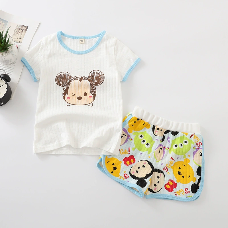 New 2024 summer casual girls home clothes short-sleeved two-piece pure cotton air-conditioning clothing thin breathable pure cotton trendy