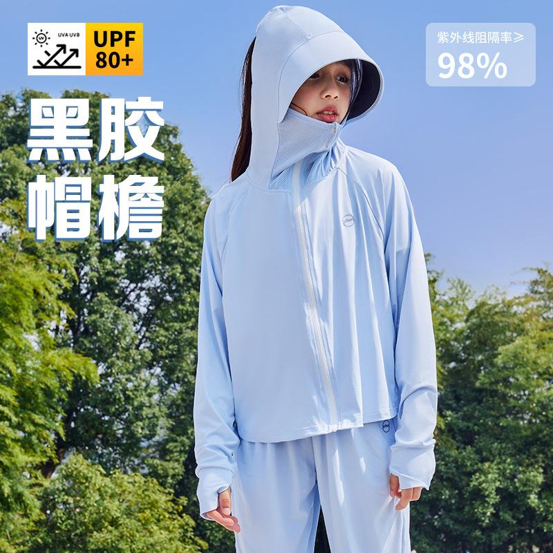 Girls’ Sunscreen Clothing Summer Ice Silk Thin Sunscreen Clothing Coat Children’s upf50 Cool Skin Clothing 7-12