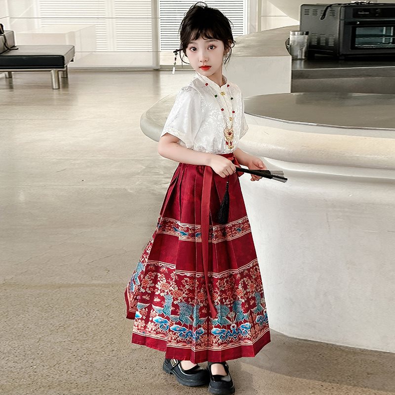 Junior high school students girls Guofeng horse-faced skirt 2024 new girls big boys girls Hanfu suit summer Tang costume ancient costume