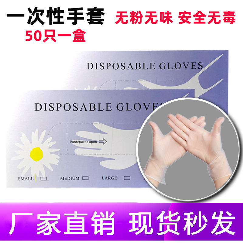 PVC disposable gloves transparent powder-free thickened Labor baking catering food-grade beauty salon tattoo gloves