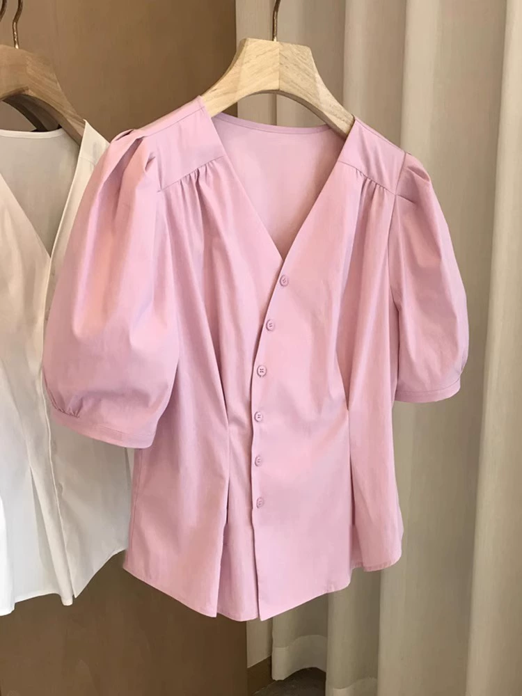 Fresh and Sweet Loose Ruffled Puff Sleeve Top Women’s Chic Niche Pullover Short Sleeve Shirt Summer New