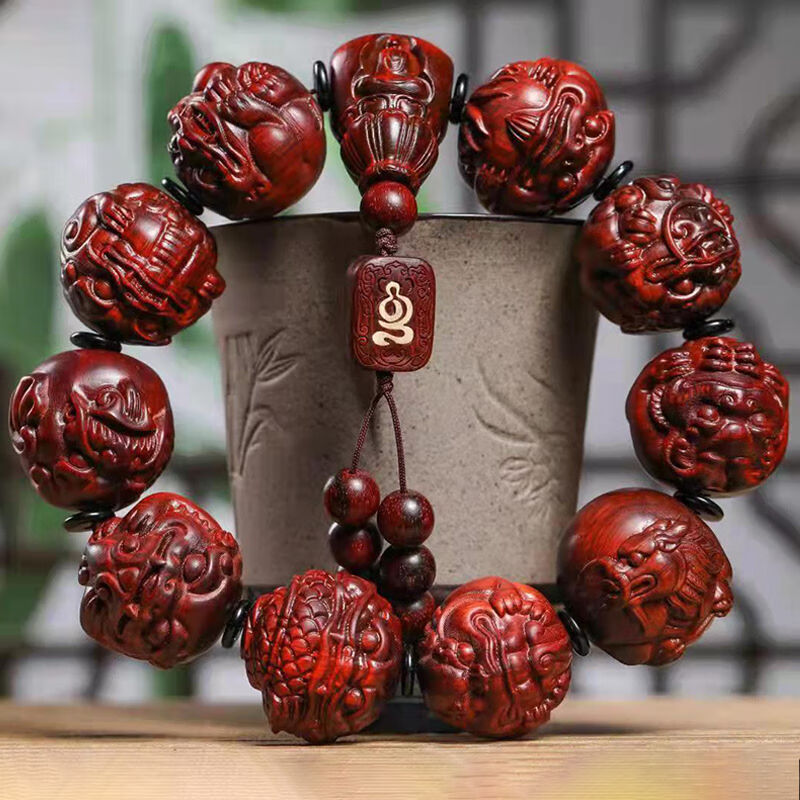 Xianjiayi Indian small leaf red sandalwood dragon nine sons carved beads bracelet jewelry specifications 2.5 rosary decoration print