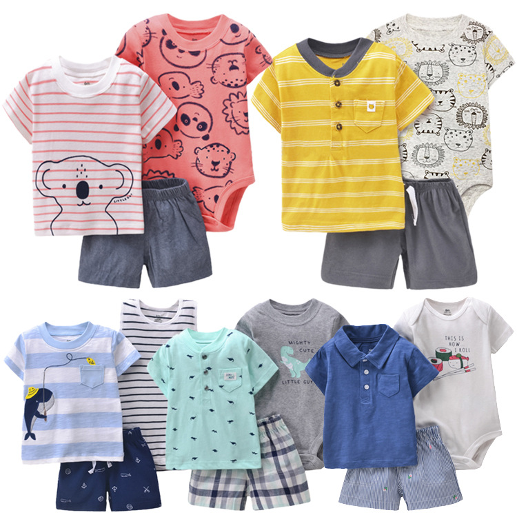 2023 children’s clothing spring/summer boys’ romper T-shirt shorts triangle romper boys’ home wear 3-piece set