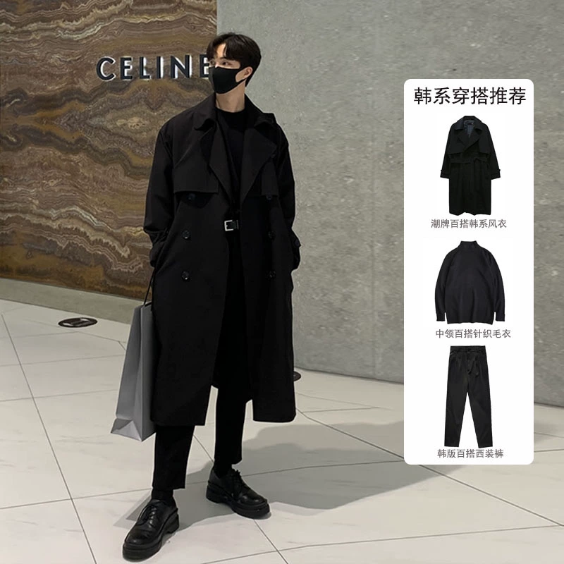 Korean version of spring and autumn mid -length sleeve couple trench coat