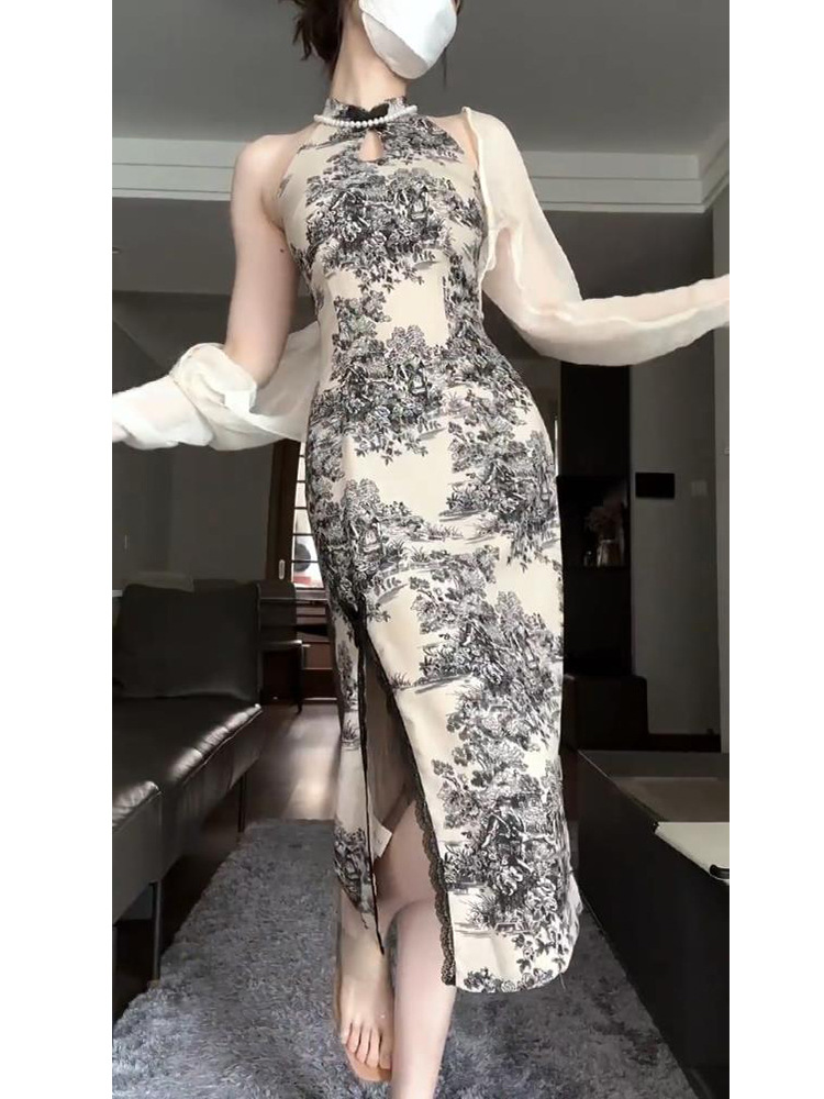 New Chinese Style Sling Dress Set Small Chanel Style Fashion Slim-fit Slimming Women’s Summer 2023 New