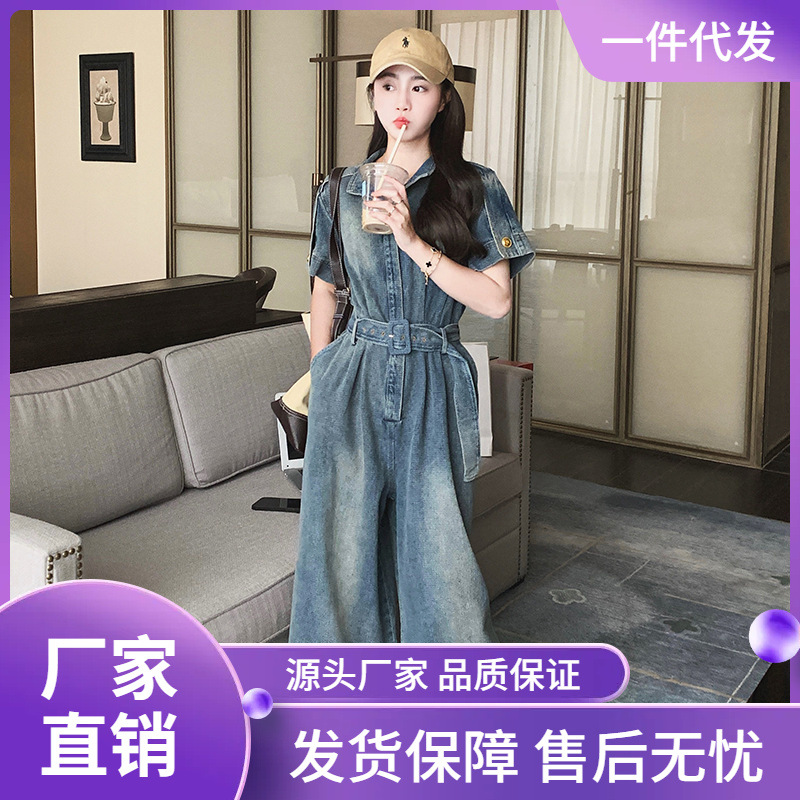 American retro heavy industry Denim jumpsuit women’s season 2024 new high-end feeling temperament slim wide leg jumpsuit