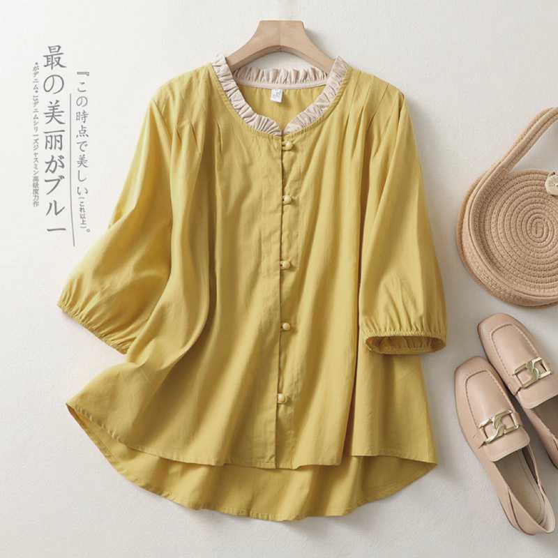 Real Shot Simple Casual Artistic Retro Summer Elegant Beautiful Short-sleeved Loose Cotton and Linen Women’s Shirt