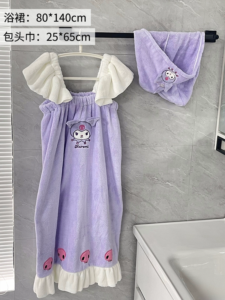 Cartoon bath towel for girls can wear coral velvet bath skirt