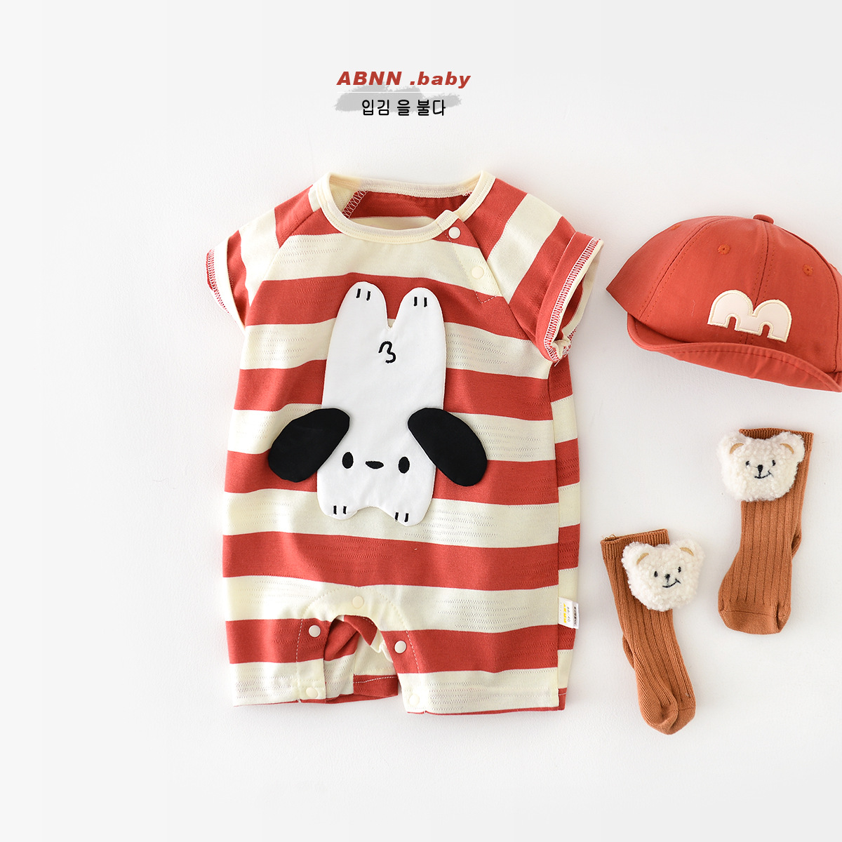 Baby Summer Short-sleeved jumpsuit Newborn Cartoon Puppy Breathable Striped Climbing Suit Baby Go Out for Leisure